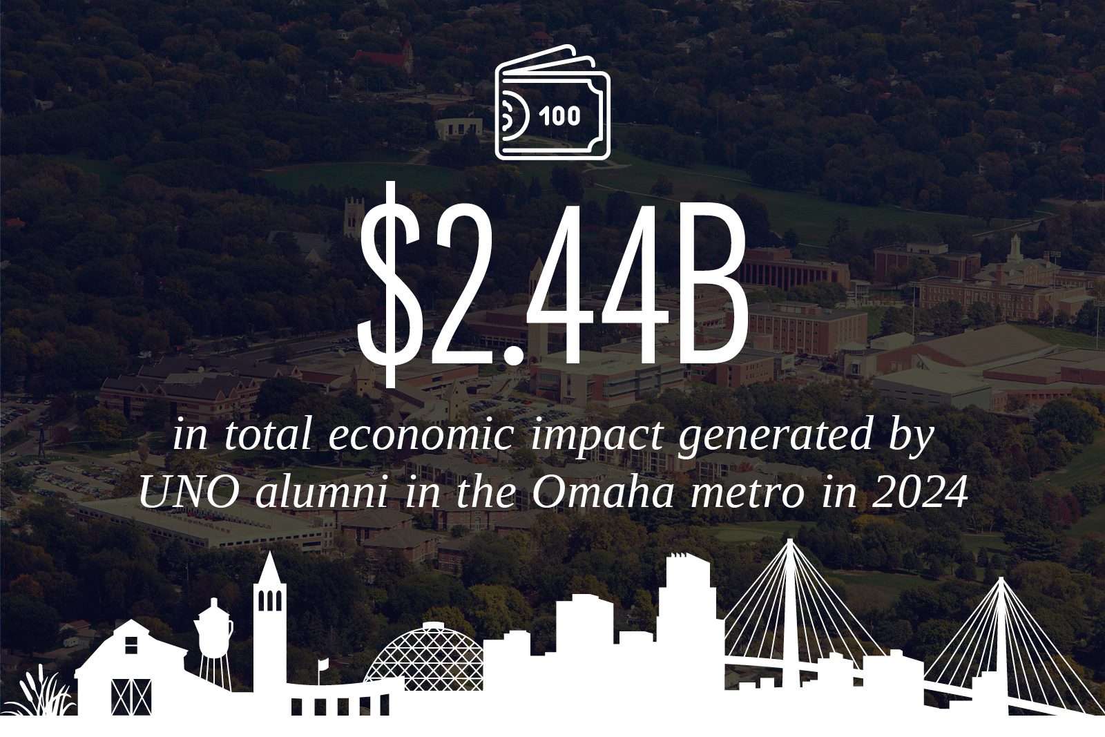 - $2.44 billion in total economic impact generated by UNO alumni in the Omaha metro in 2024.