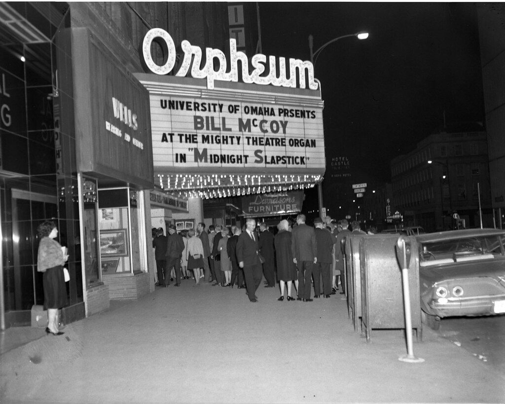 Student Center Concert and Lectures Committee hosts the first "Midnight Slapstick," which features a concert on the Orpheum Theatre's giant Wurlitzer organ while a silent slapstick movie played. Professional organist Bill McCoy played the musical interpretation to the silent film. The second annual Midnight Slapstick in 1968 featured former silent film star Leatrice Joy, whose "Eav's Leaves" was shown. The series last played in 1970.