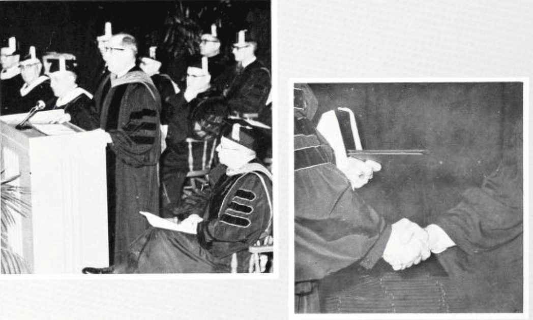 Dr. John Furbay, director of the Educational Service Department of Trans World Airways, speaks at OU’s Educational Improvement Institute on “Our Shrinking World”