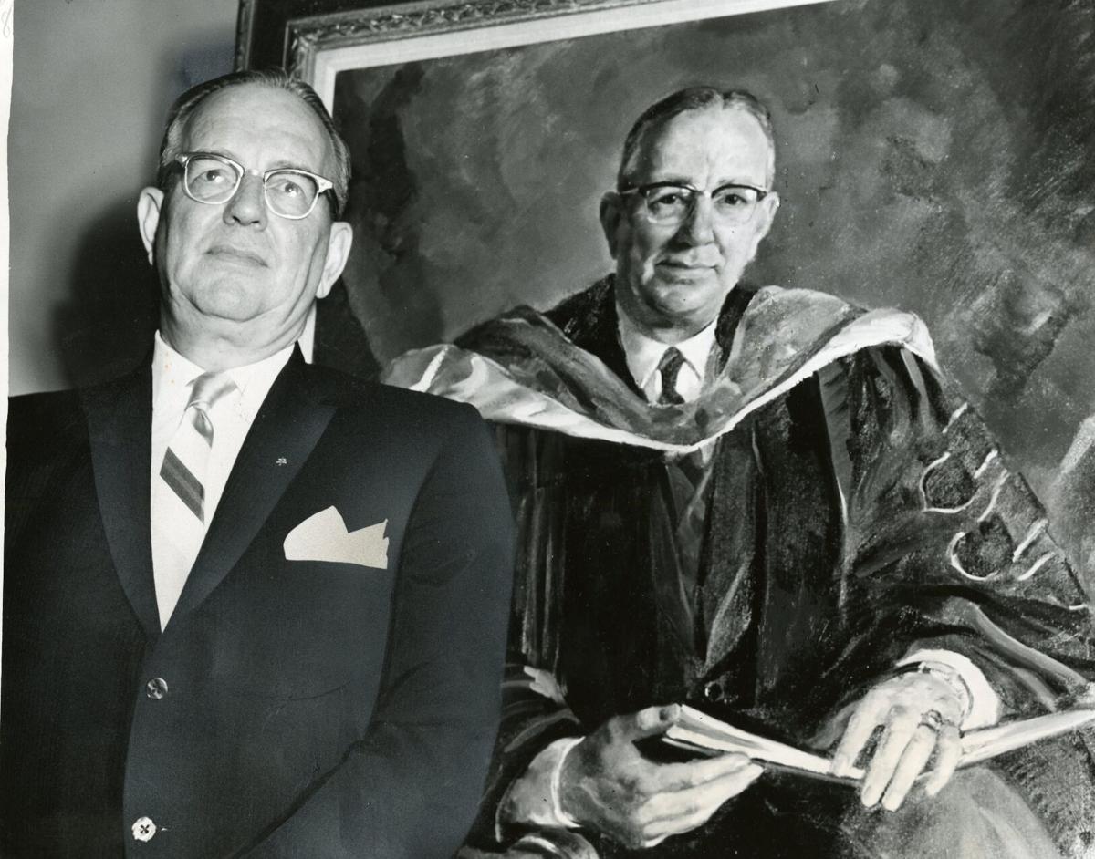 Clay Shaw, manager of the International Trade Mart of New Orleans, speaks at OU’s World Trade Institute; Shaw was later the only person prosecuted in connection with the assassination of President John F. Kennedy