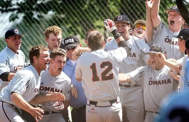 UNO baseball team clinches at least a share of the Summit League title — then wins it outright the next day — in a win over South Dakot State. It is the first conference championship of any UNO team in Division I competition.