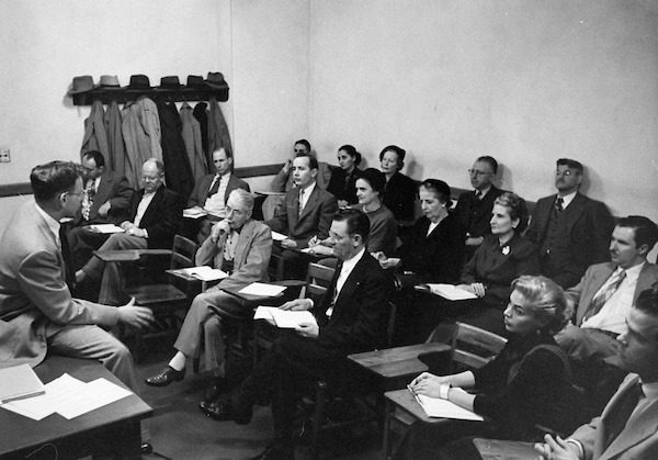California U.S. Senator and Republican majority leader William F. Knowland is the first speaker at the third annual World Affairs Institute, speaking on “Paradox of Coexistence.”