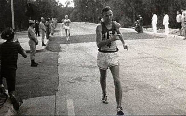 Rudy Haluza finishes fourth in the 20K race walk at the 1968 Mexico City Olympics.