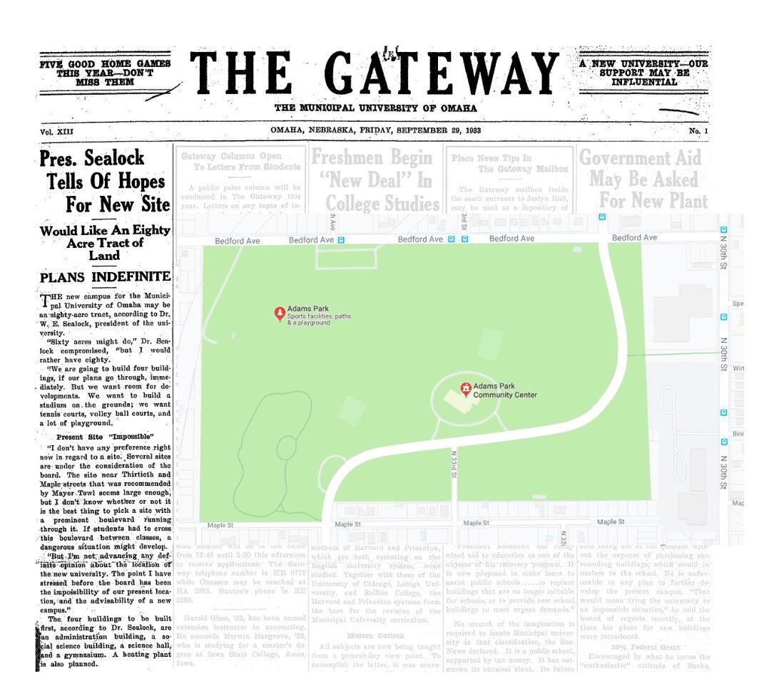 Omaha Mayor Roy Towl suggests a new home for the Municipal University of Omaha, an 80-acre tract between 30th and 36th Streets and Maple to Bedford.
