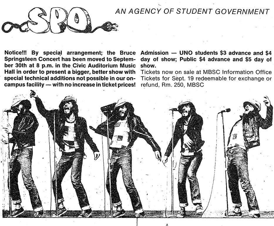 Bruce Springsteen performs for UNO’s Student Programming Organization at the Civic Auditorium.